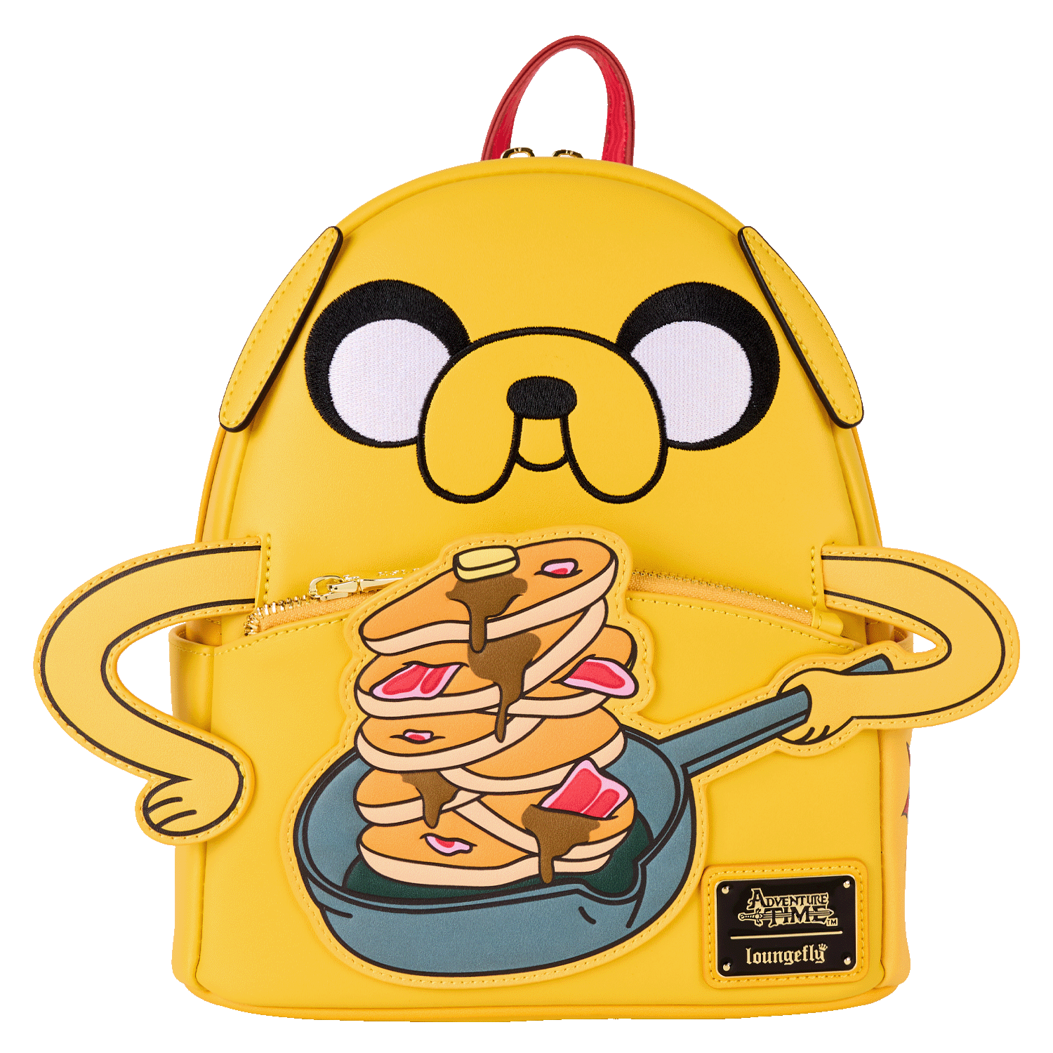 Where are our Adventure Time fans at?! This mini backpack features Jake holding a pan stacked with bacon pancakes! Feel free to sing along as you rep the bag. ""Makin' Bacon Pancakes"" is written on the side pocket. Bacon pancakes are always a good idea – and so is repping some Adventure Time style!