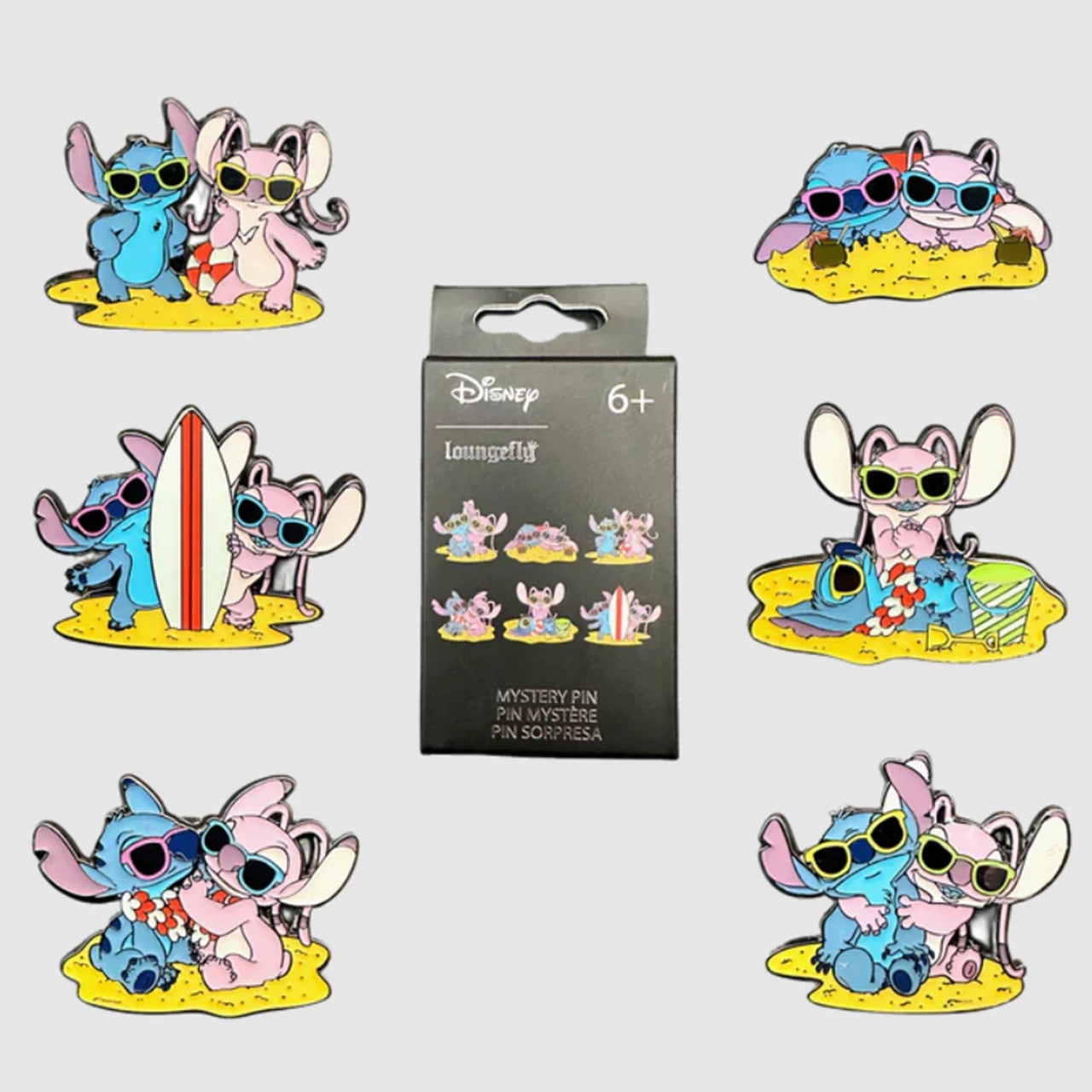 Enjoy a day of sand and sunshine with the Loungefly Disney Stitch and Angel Beach Scene Blind Box pin set! Each pin features Stitch and Angel in a variety of beachgoing scenes. These Mystery Pins are sure to add an adorably out-of-this-world touch to your favourite outfit or accessory.