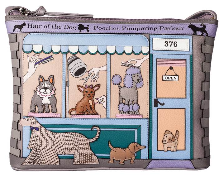 Beau and his dog friends are having a pamper on this cross body leather bag with dog applique theme. The intricate detail is applied by hand and creates a wonderful visual statement.
