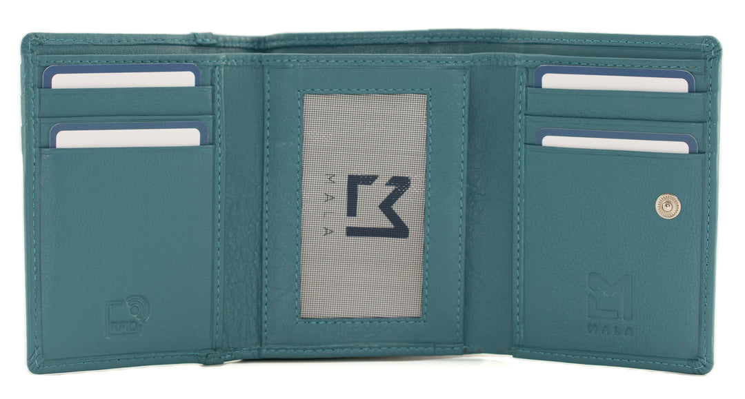 Compact and ideal for small handbags, this gorgeous smooth leather tri fold purse holds more than you think.