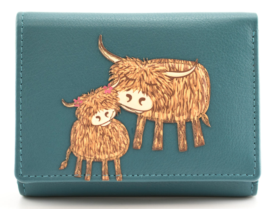 The adorable highland cow applique has been hand-stitched onto the front flap and there's built in RFID protection. Available in 3 colourways and packaged in dust bag.